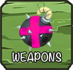 The main weapons are displayed on the left line of the interface during combat, the grenades are above and the bonuses are on the right side.
